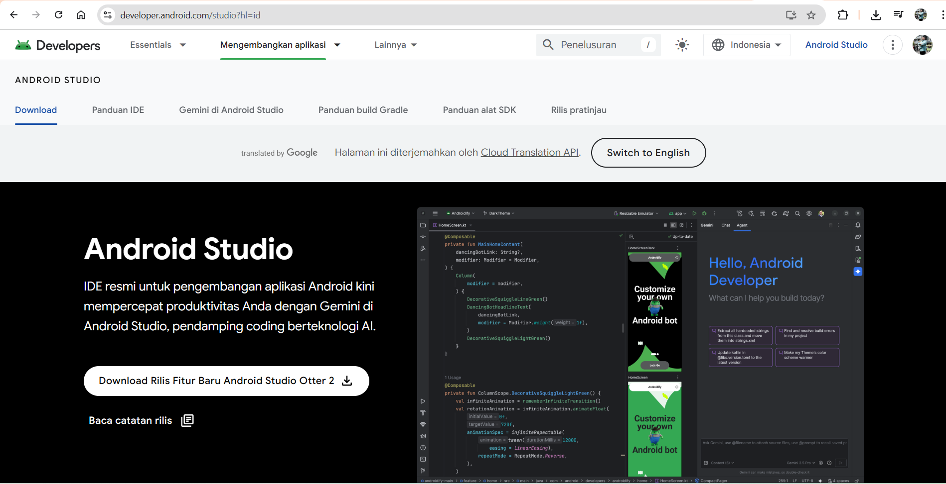 - Kunjungi situs resmi developer.android.com/studio.