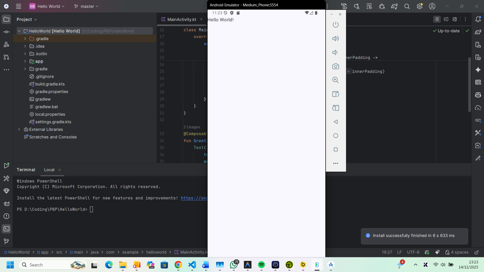 Dalam artikel ini, saya akan mendokumentasikan proses instalasi Android Studio di sistem operasi Windows hingga berhasil menjalankan aplikasi pertama "Hello World" menggunakan bahasa Kotlin.