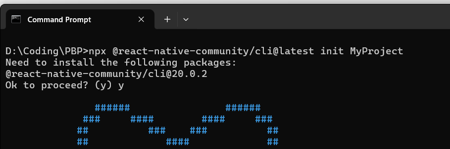 npx @react-native-community/cli@latest init MyProject